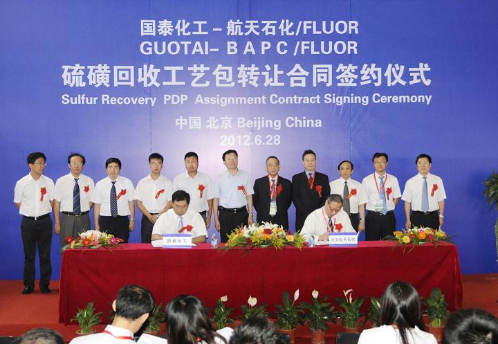 628日,北京航天石化與鄂爾多斯市國泰化工有限公司就美國福陸公司硫回收工藝包轉讓合同,進行了簽約儀式,儀式在北京中國國際展覽中心舉行,《中國化工報》以專題報道的形式,在73日二版科技創新版面對簽約相關事項進行了頭條刊登。