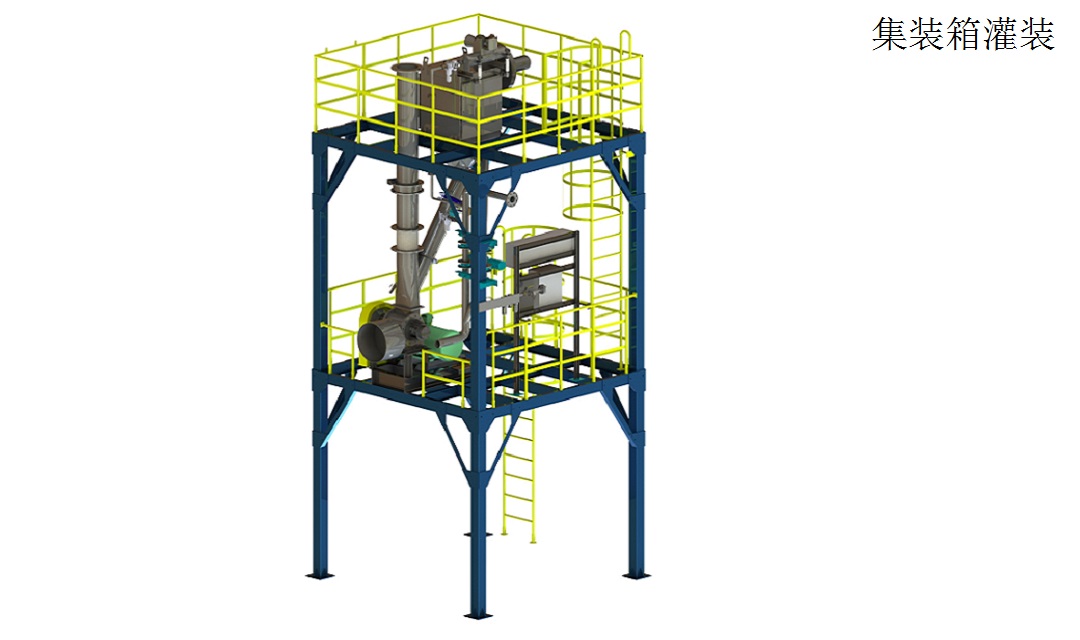 ? 集裝箱灌裝系統能力:120噸/小時,灌裝形式:重力或旋轉式